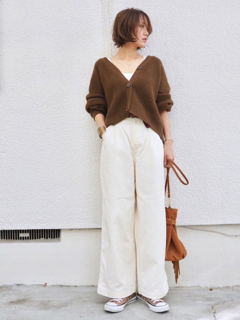 駝色單品比起恬淡的米色系又多出一分沈穩、架式十足的性格。以長板開襟衫作為外搭著用更能彰顯隨性味道。鞋履部分配上皮革高跟短靴,呈現俐落的都會風情。