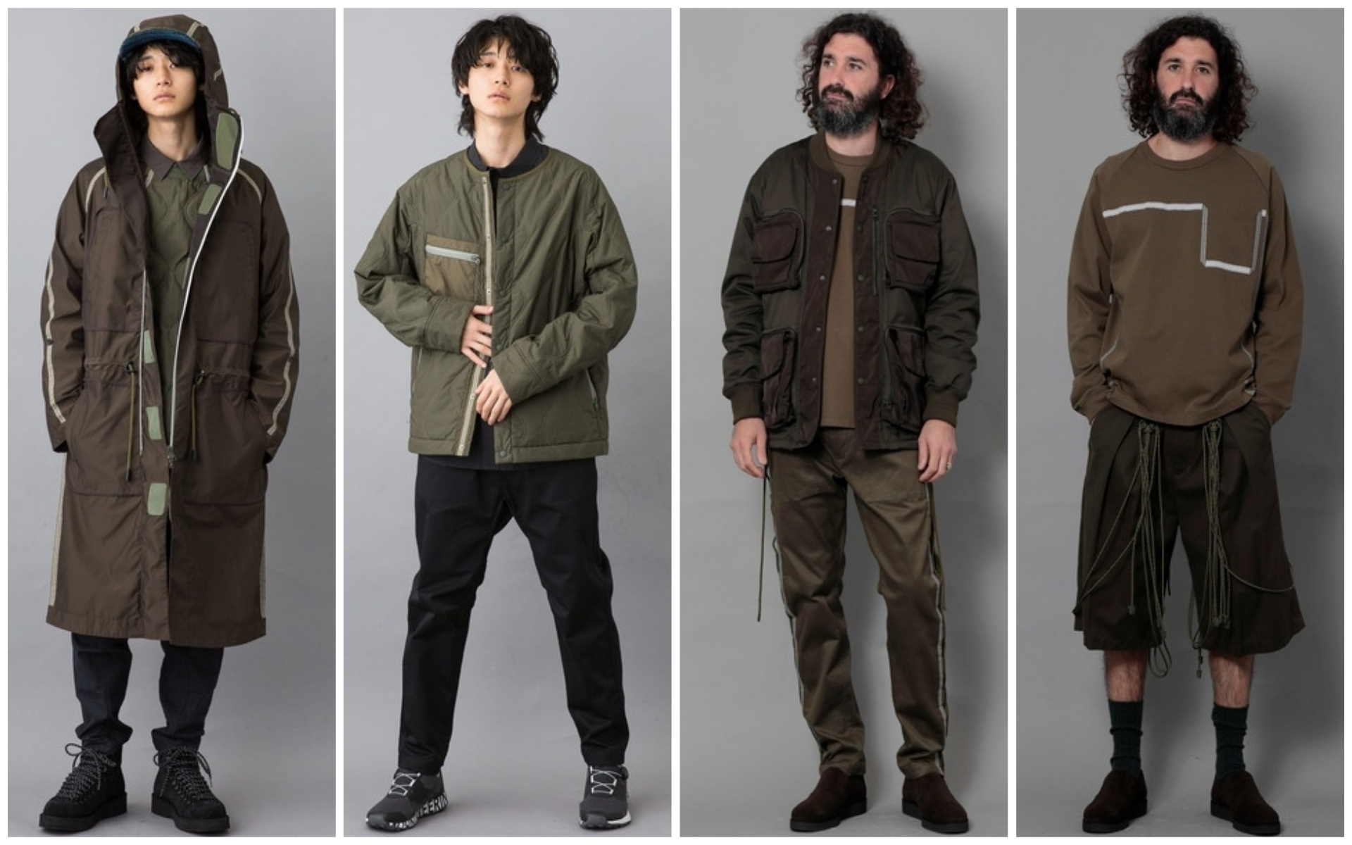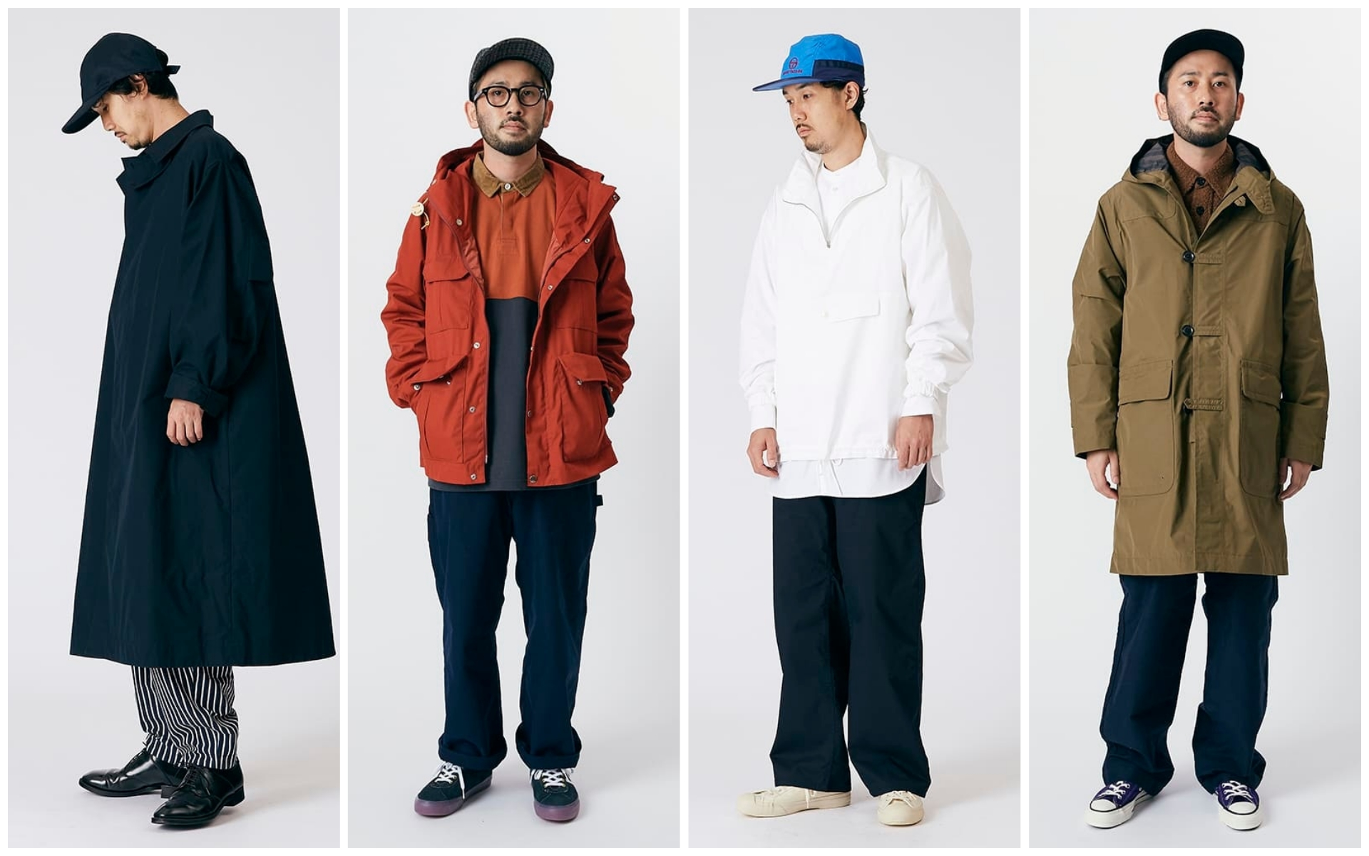 服裝版型上通常以 Mountain Parka、Long coat、Pullover 等版型設計,除了兼具大面積遮擋雨水的效果考量外,方便穿脫及擴增配放各式雜物的空間也是設計參考標準。然而僅僅考慮實用性已不足以引起大眾共鳴,將品牌獨特美學融入設計中才能在時裝產業中嶄露頭角。以下FACY將為各位讀者介紹由日系品牌所推出的”Urban Outdoor”穿搭示範。