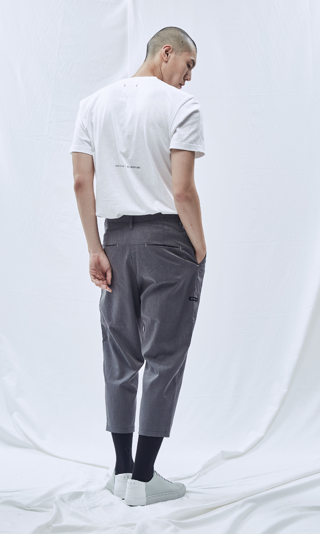 DYCTEAM 設計團隊在設計此款褲款時,從不同年齡與經歷的想法撞擊,衍生出本季 “ TRANSITION PERIOD “主題概念,並以文字段落上常見的「;」做為意象。西裝褲採用彈性西裝布製成,並以上寬下展褲的剪裁方式呈現,搭上長襪、休閒布鞋即可展現輕鬆且有型的時尚態度。