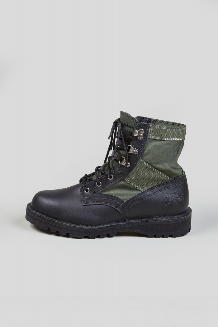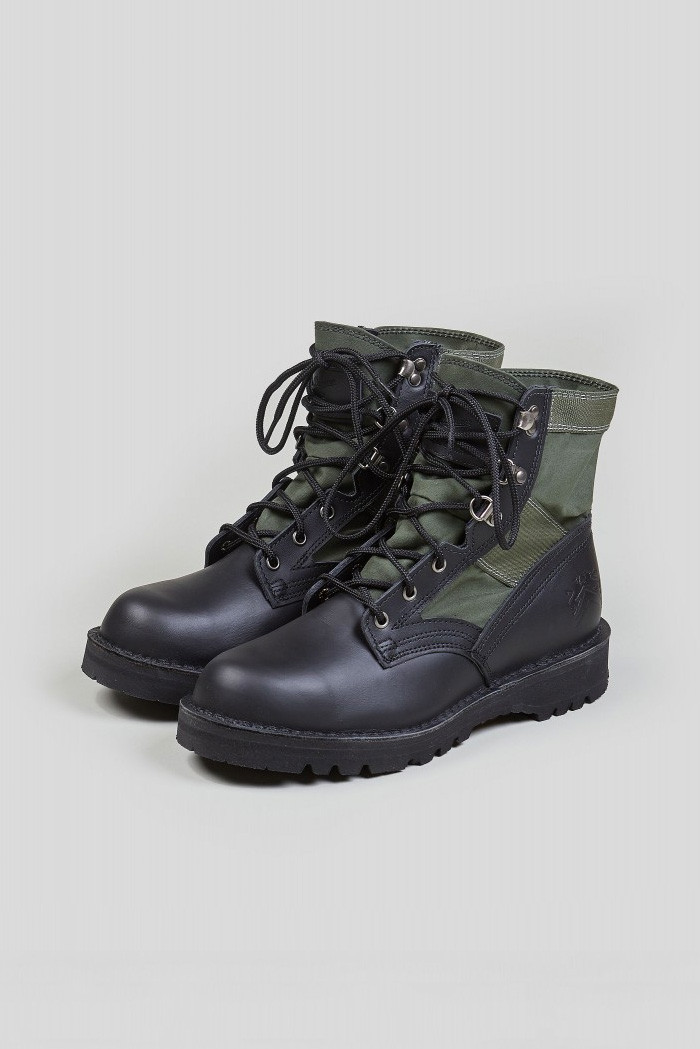 以軍事及古著聞名的品牌「Nigel Cabourn」本次以越戰時期美軍軍靴為雛形,並與美軍有長期合作的製靴品牌「Danner」推出聯乘靴款“Jungle Boots”。於「Danner」根據地“波特蘭市”生產且以手工縫製製作,而「Nigel Cabourn」也選擇了來自英國的古著布料加以打造靴身,並在鞋舌的皮標上印有雙方合作的品牌標誌。如此規格的細節呈現可謂傳遞雙方精神的聯名靴款。