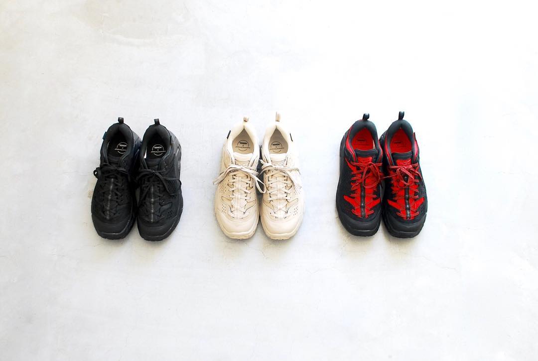 由鈴木大器主理的品牌「Engineered Garments」與法國運動品牌「HOKA ONE ONE」 合作所推出的 Outdoor 鞋款“TOR ULTRA LOW”,近期受到瘋狂矚目。擁有復古外型外,不輸給靴款的實用面以厚實Vibram大底與eVent科技素材呈現 ,為日常鞋履帶來極高的搭配性外也注入防水透氣的機能靈魂。