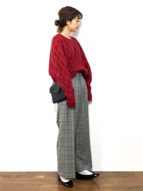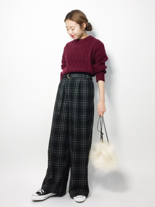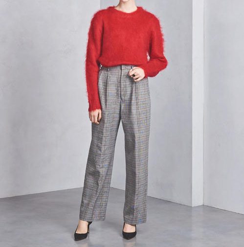酒紅單品的秋冬感印象強烈,是這兩季不可輕易錯過的色彩選擇。搭配深色的格紋長褲,大人印象的酒紅上衣為整體穿搭注入氣質的小女人氛圍。