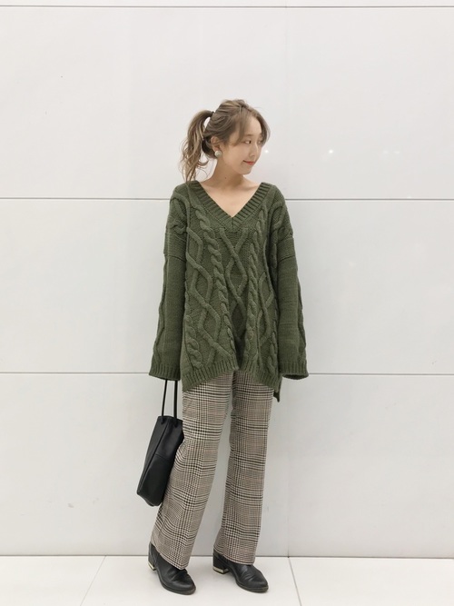 帶橘調的磚紅色也是相當容易搭配的暖色調,選擇帶有編織紋路的針織單品讓簡單的上衣與格紋褲的搭配添上了另一種層次效果。