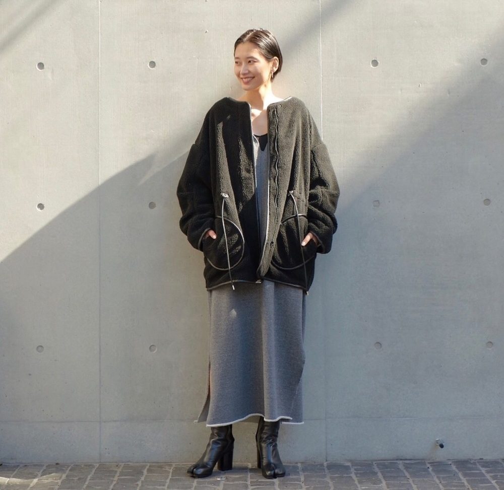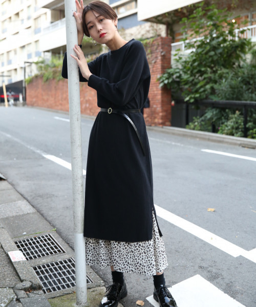針織面料是秋冬穿搭裡必備的元素,不僅增添造型暖度,柔美質感能襯出溫柔的魅力氣質。利用多層次的堆疊方式,使服飾線條賦予豐富感受,內搭一件極長裙襬的印花洋裝,透過腰帶點綴束出顯瘦身形之外也使時髦氛圍更提升。