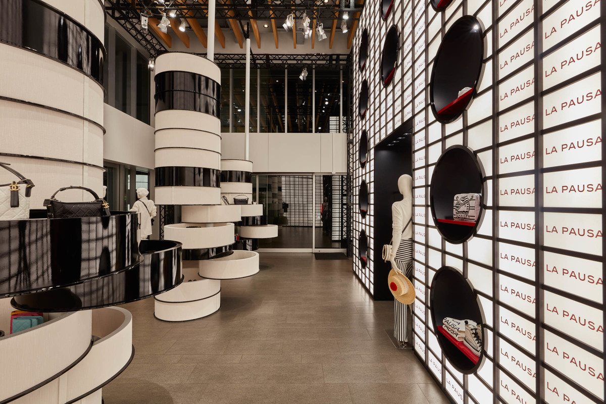 與之前的香奈兒祭同樣是以日本的大河氛圍為設計元素,此次的「CHANEL 限定期間 Boutique」選擇黑、白、紅三色做為活動的主體色調,並以日式和室的障子為發想設計牆面,再以西洋感的船舶舷窗作為聯想完成漸層式的陳架。戶外則是將口紅外型的裝飾物視比擬為竹子造景,入晚便會打上燈光,從蔦屋書店的入口一路走往「CHNEL 限定期間 Boutique」間的一小段路不管是白天還是夜晚都讓人感到相當有趣。