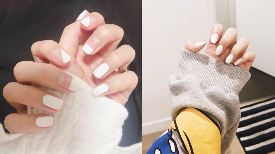 最後一款終於來到純白美甲了!黃黑肌女孩先不要急著離開~因為小編要告訴你們選什麼樣的白色,讓你做全白美甲也不會顯黑!秘訣就是選擇淺米白、象牙米色,或是霧面白色美甲!因為淺米白、象牙米斗帶有一點裸色調,可以讓肌膚更顯白,霧面款則是因為將甲面消了光,所以比較不會有亮面指甲反光時帶來的微螢光感~