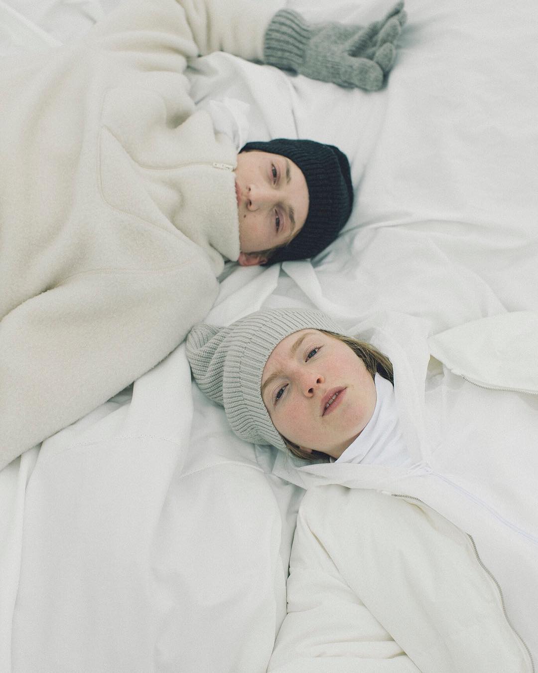 除了多變的質感帽款外,「mature ha.」另一特色正是他們每季美如一部電影或攝影集的形象照。2018 AW 邀來了知名攝影師橫浪修掌鏡,以森林、田野和白布營造出的雪景意象作為背景,映襯了「mature ha.」多變 、時而有著活潑童趣的一面。