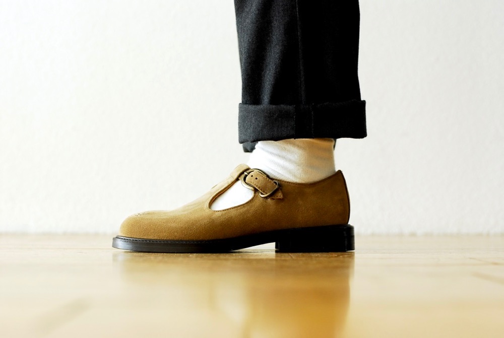 擅長以皮革媒材作為創作的東京皮件品牌「Hender Scheme」,除了復刻各式經典鞋款外也熱衷創作自家的品牌款式。近期推出的皮製休閒鞋 “T strap”,顧名思義是以部份鏤空鞋身結合扣環處作為固定而成為T字外型,鞋尖處些許的雕花圖騰分佈讓充滿休閒感的鞋身也多了點正式,即便在冬季中和長大衣搭配也完全無違和感。