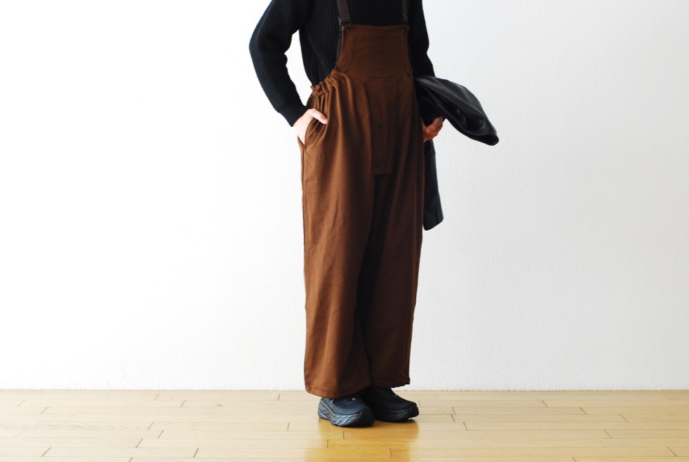 連身吊帶褲(Overall)的歷史源自於早期歐美各領域勞動者的工作服裝,舉凡畫家、工匠、農夫甚至是軍人都能窺見其身影,而最常見的材質便是以丹寧及帆布素材製成的寬鬆吊帶褲。兼具兩種穿法的連身吊帶褲,無論全身穿套或是卸下上身吊帶以下著之形式著用,皆是能融入日常的工裝印象。