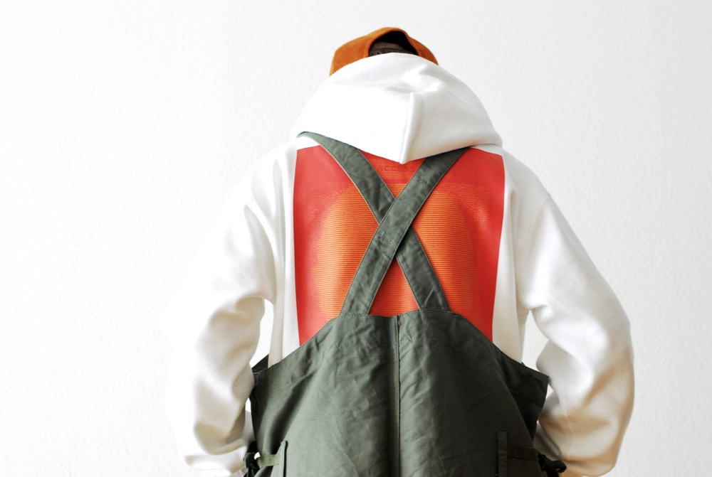 以注入日式傳統元素聞名的日本時裝品牌「Sasquatchfabrix. 」,以「ALWAYS PRESENTING A SENSE OF FRESHNESS」的美學理念打造出具備新鮮感的前衛風格服裝。而此次以美式工作連身服作為靈感,選用了富光澤感的聚酯纖維材質,搭上刻意的寬鬆剪裁,並稍降低了原本應該涵蓋至胸口的上身視覺,讓整體顯現出有別於其他設計品牌的連身褲工裝印象。