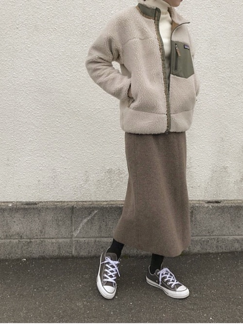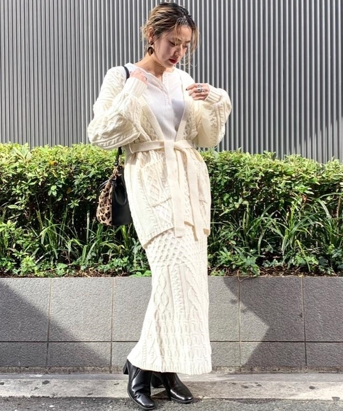 選擇窄版的裙裝版型,不論是作為打底或是造型的重要部分,針織長裙都能扮演著十分稱職的角色。以下以簡約溫暖的色調為主題,參考日本女生是如何以窄版針織長裙穿搭出冬日造型的柔美印象。