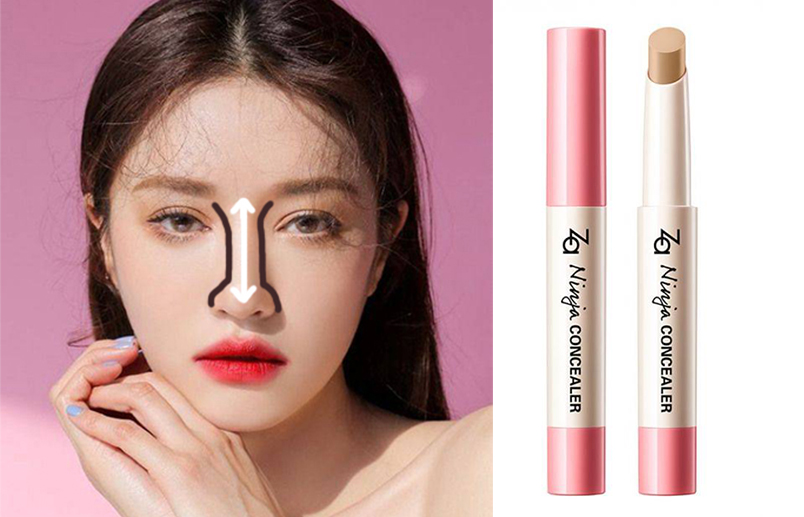 對於天生五官不漂亮的女孩,修容真的比眉毛還重要!不止要持久還要能防水,這時遮瑕膏就是妳的神助手!如果你是天生鼻子偏左或偏右的女孩,想要修出漂亮輪廓,在修容上更要小心!若是鼻型偏左,左邊的陰影就要短,而右邊的陰影要長,此外陰影和打亮的位置都要朝鼻子反方向畫,借此改善鼻型視覺上的歪斜感。