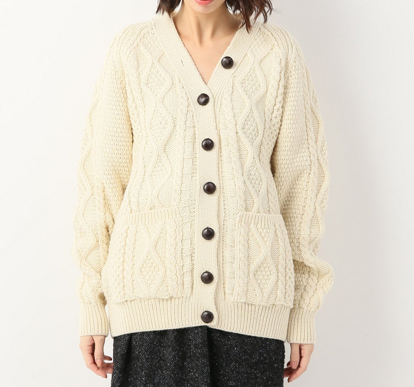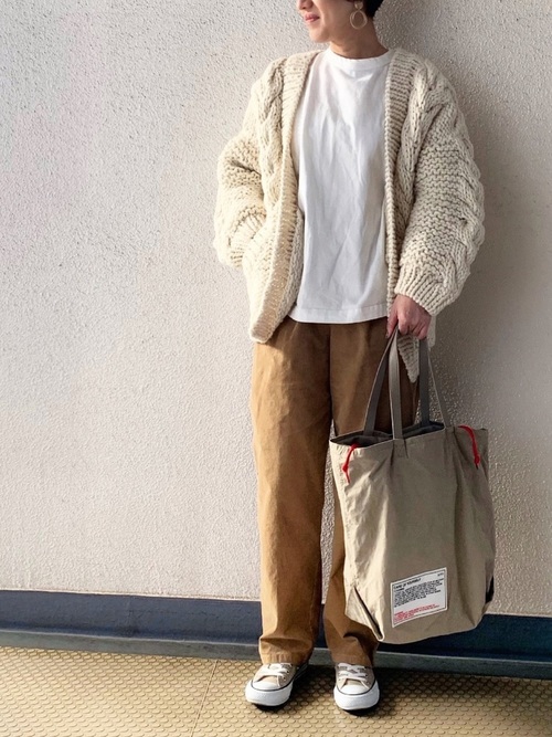 不論是溫暖的冬日亦或是不遠的春季,針織開襟外套都會是搭配的逸品。平紋的單品簡約而低調,而粗針織結合麻花花紋編織的款式則能提升針織外套在穿搭時的印象感。從充滿好感的米白色麻花編織款開始著手,就學習以下示範嘗試利用基礎款完成簡單的女孩感造型。