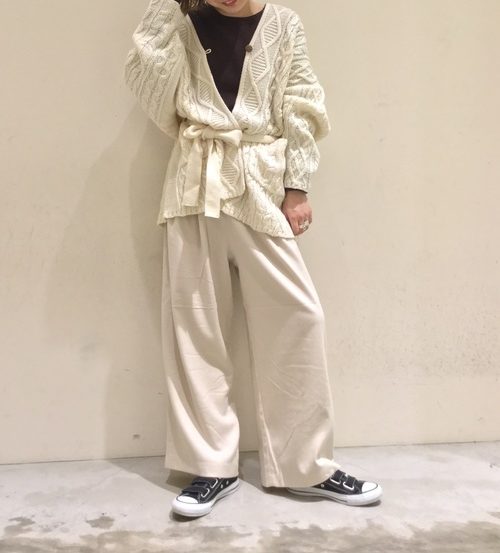 擔心粗針織的款式無法有效修飾身形時就選擇有腰帶設計的款式。做出腰線後打造出良好的上下身比例,再利用同色系的下身就可以營造長腿的視覺感。