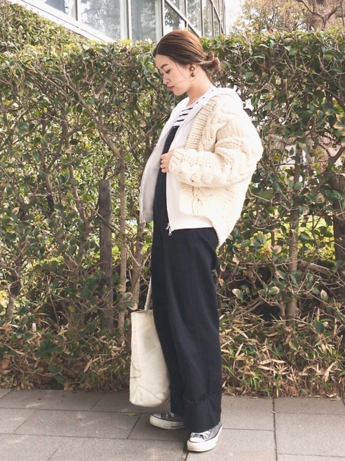 與長版洋裝概念相同,運用連身長褲搭配上針織開襟外套也能有相當的層次效果。寬鬆的衣著輪廓呼應了針織單品的慵懶氛圍,想輕鬆穿搭出個性感時不妨就參考這個衣著組合。