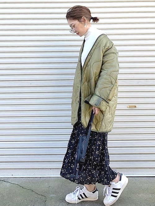 碎花洋裝的女孩氣息相當外顯,但直接穿搭出單品原先的印象感並無法展演個人特色。記得要善用與運動鞋的搭配才能混搭出出眾的造型氣勢。
