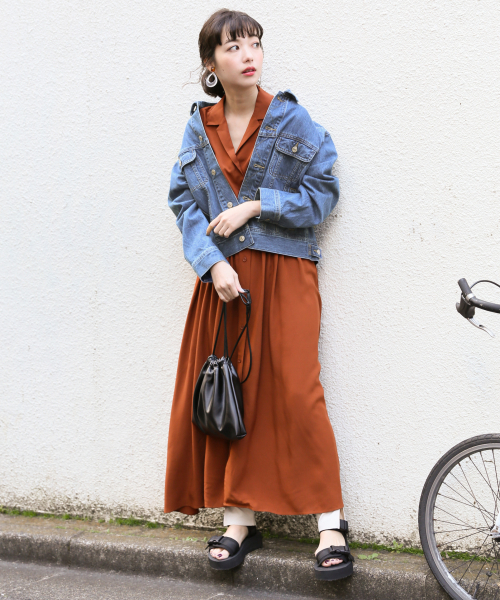 洋裝是可以最快速完成外出裝束的單品,靠著空氣感的剪裁,簡單一件即能表現出俏麗的女孩印象。若是覺得一件式的衣著少了些層次感的話,不妨利用牛仔外套創造出衣著不造作的小小層次。