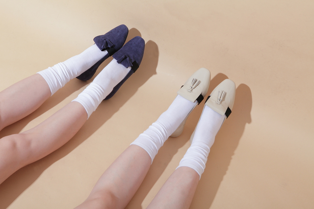 可以直接套上的樂福皮鞋相當便於穿搭,但少了鞋帶設計的款式總覺得有些樸實的話,偶爾選擇有著流蘇點綴的款式也許就能讓穿搭氛圍稍微轉變。較淺的鞋口可以有效修飾腿部線條並拉長腿型,亮面的光澤感則能為造型達到聚焦的效果。