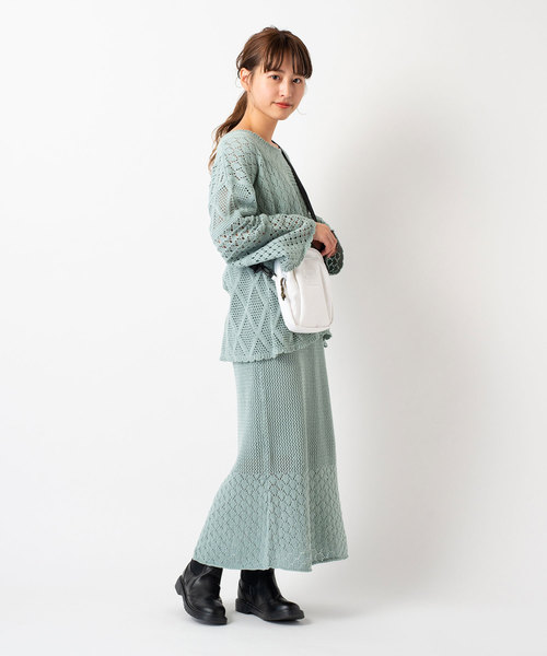 利用波浪與貝殼花紋編織手法的針織長裙,將氣質製造一股知性優雅的氛圍,混搭同款式的簍空上衣,透過透視的風格微微露出肌膚就能散發出優雅可愛的女人魅力。