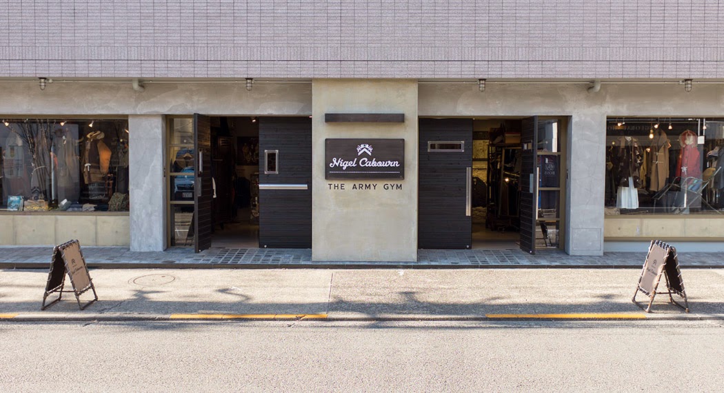 Nigel Cabourn 在 2009 年於東京中目黑開設了他的第一間旗艦店,名為「The Gym World」。其後陸續在大阪、中國北京等亞洲逐漸拓展店舖,並且未來亦有在台灣展店的計畫。喜歡軍裝風格或古著的話,從他身上絕對可以學到非常多!