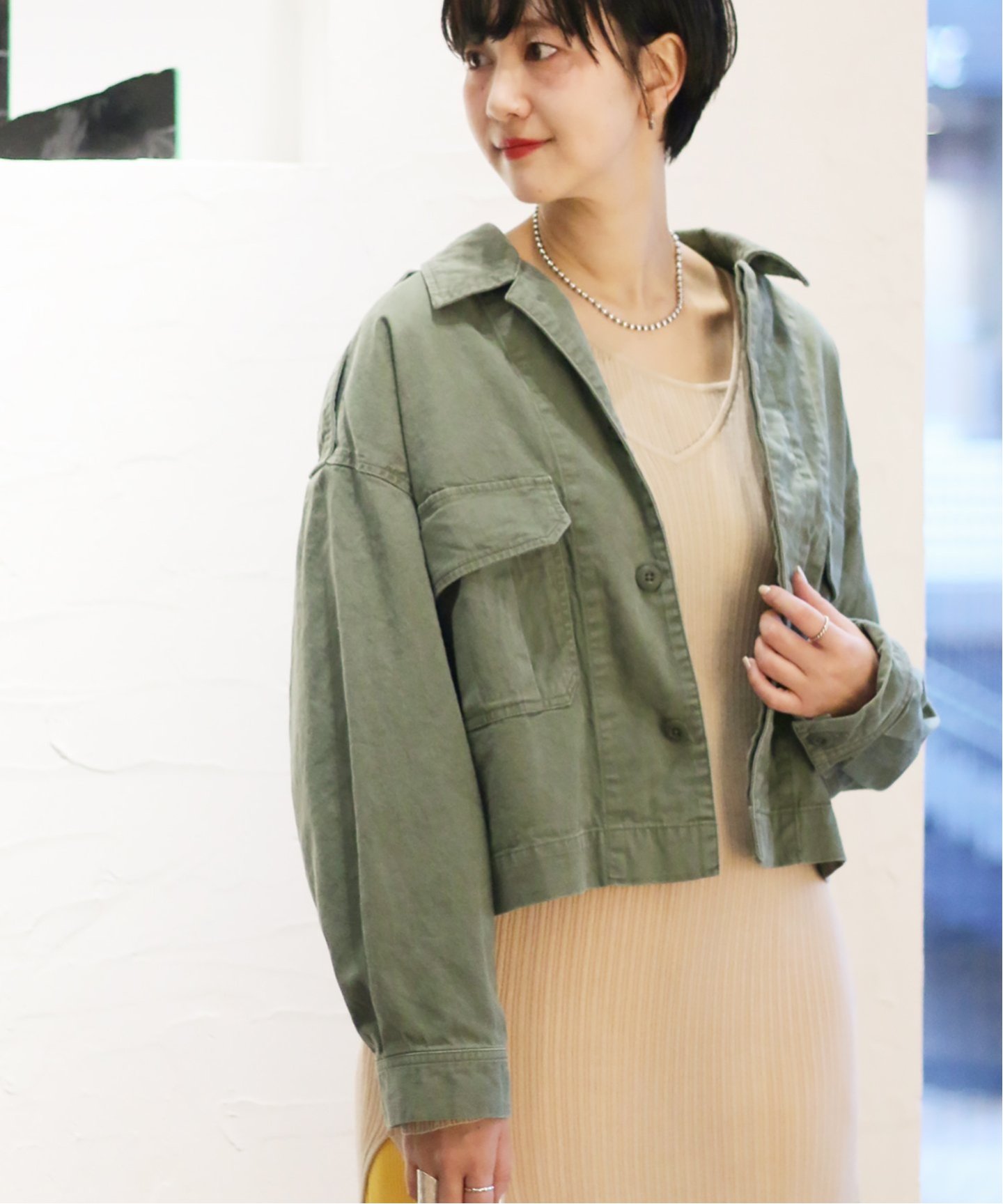 軍風薄夾克 X 裙裝