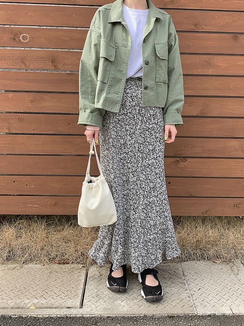 #Look 1 軍綠 + 碎花長裙