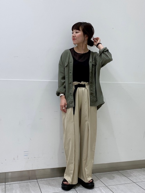 同屬大地色系的軍綠色與卡其色調,兩者可輕易搭配出衣著自然的好感氛圍。上下身皆為垂墜感的設計,充分表現了在夏天陽光下的慵懶意境。