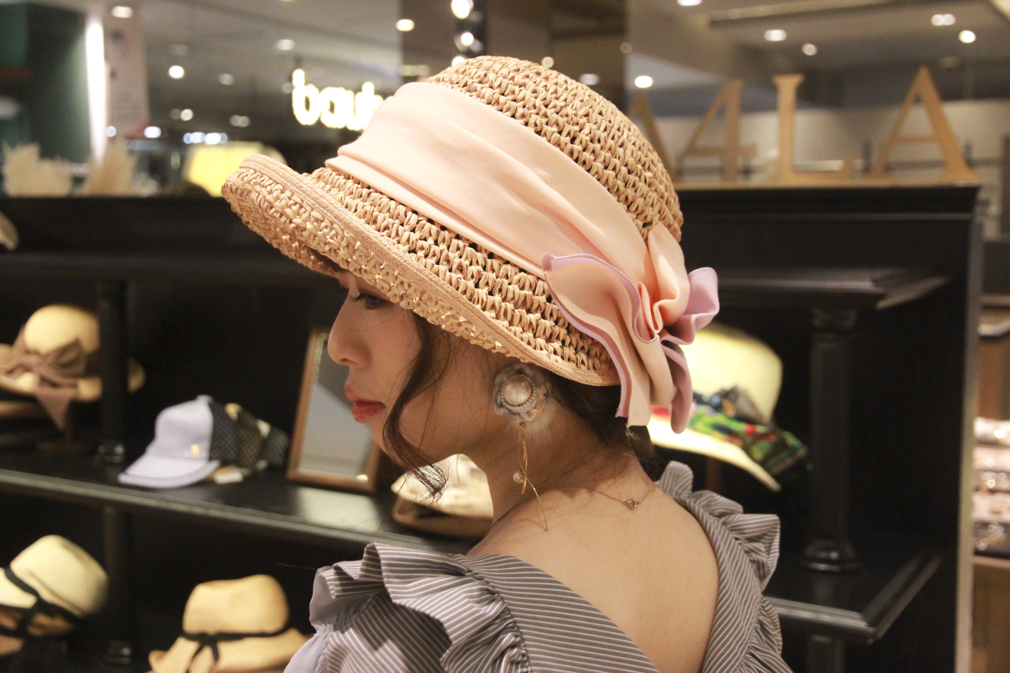最後一頂是在此次限定店開募前就在 IG 上受到不少台灣人矚目的帽款。副店長表示有著粉嫩色元素的單品本來就是許多台灣女生偏好的款式,而浪漫的蝴蝶結呼應夏日的繽紛氣息,還能表現溫柔婉約的個性印象,本季想讓帽飾成為穿搭主角的話,這一頂將會是相當合適的選擇。