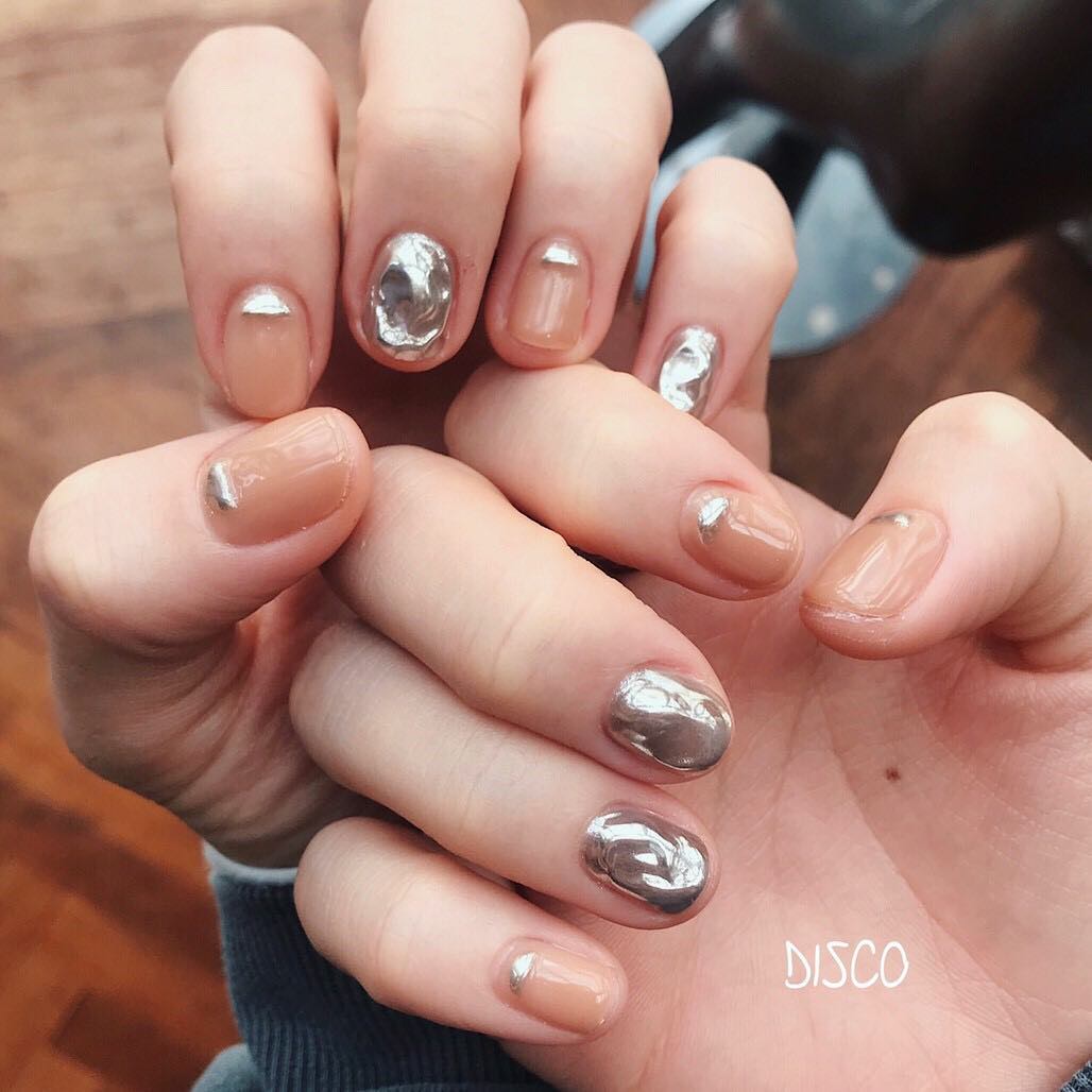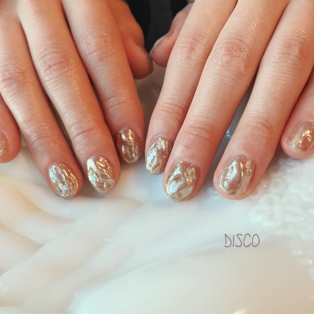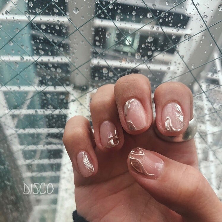 金屬立體指彩也是 DISCO 的人氣項目,巧妙運用金屬粉末和凝膠層疊勾勒出具有凹凸感的指尖雕塑,怕做滿太高調也可選擇透明底色,透露部分溫柔氣息。
