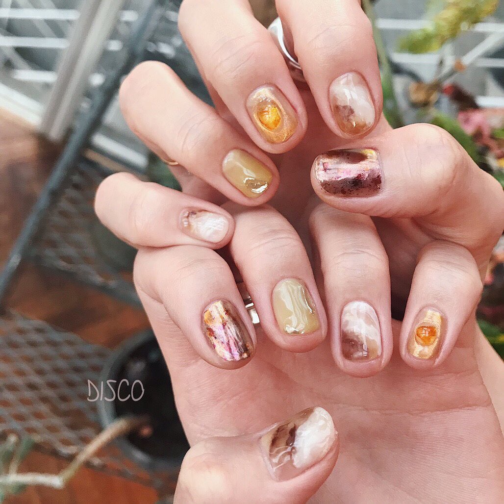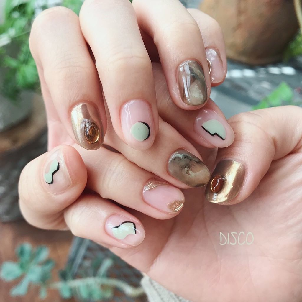 DISCO 最拿手的花紋之一非礦石系指彩莫屬。美甲師手工繪製的礦石花紋唯妙唯肖,再點綴真正的礦石、金箔等立體物件就能讓整體更加精緻細膩。春夏的趨勢是不將所有手指做上重色,跳色並帶入透明感的設計更輕盈而迷人。
