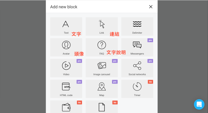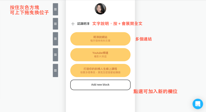 一開始進來會是空的,請你點選「Add new block」來增加新的欄位。