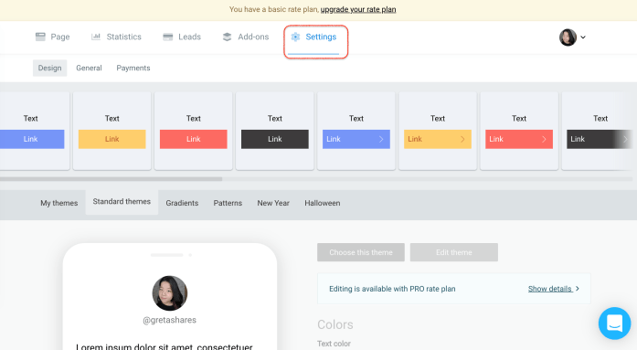 再來頁面最上方的Settings可以讓你更改你的按鈕顏色及樣式,像我是改成圓角的按鈕圖案。