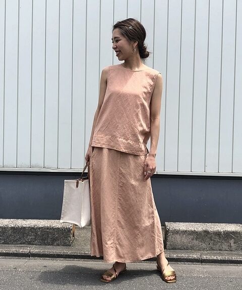 一件式單品雖然可以輕鬆完成穿搭,但稍嫌休閒感風格太過於隨興的話,不妨就選擇成套式的單品來打造俐落而溫柔的夏日造型。套裝式的服裝讓衣著氛圍多了一分正式感,而土色系的配色卻可以讓整體不那麼死板,透過柔和且百搭的色調,土色系套裝正是本季表現大人感穿搭的不二選擇。