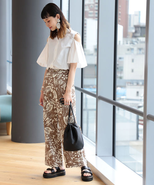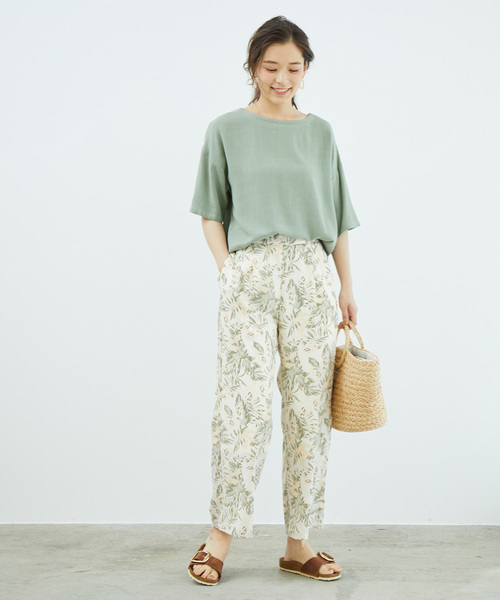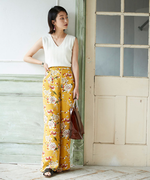 利用有挺度的面料,印花長褲也能穿出俐落的服裝印象。淡雅的色調讓印花表現出優雅質感,而大面積的花色則能讓繽紛感的單品也能不失大人味。