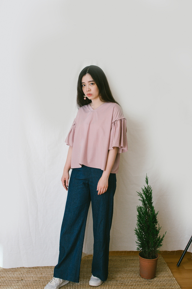 簡約女孩-麻料寬褲