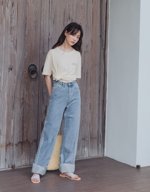 大反摺直筒牛仔寬褲