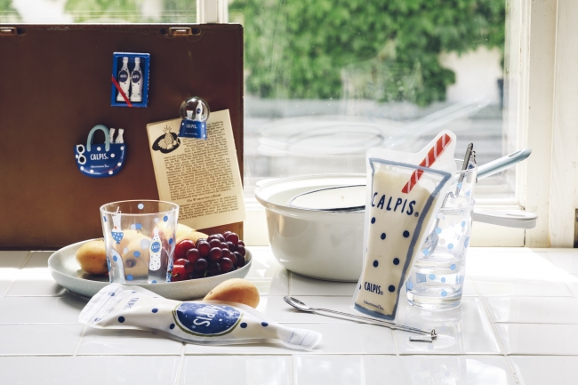 為慶祝可爾必思上市至今 100 周年,可爾必思公司與日本午茶生活品牌 Afternoon Tea 攜手合作推出了聯名的周邊商品。此次的聯名活動邀請了在美國相當活躍的插畫家 Kate Pugsley 擔任藝術設計,透過他所擅長的人物插圖及簡單的色彩描繪出如同可爾必思喝起來那般的沁涼清爽。以可爾必思的象徵形象「點點」為主題,並以夏天的回憶為設計發想,為在七夕誕生的可爾必思打造了一系列童趣與清新夏季感兼具的生活雜貨。
