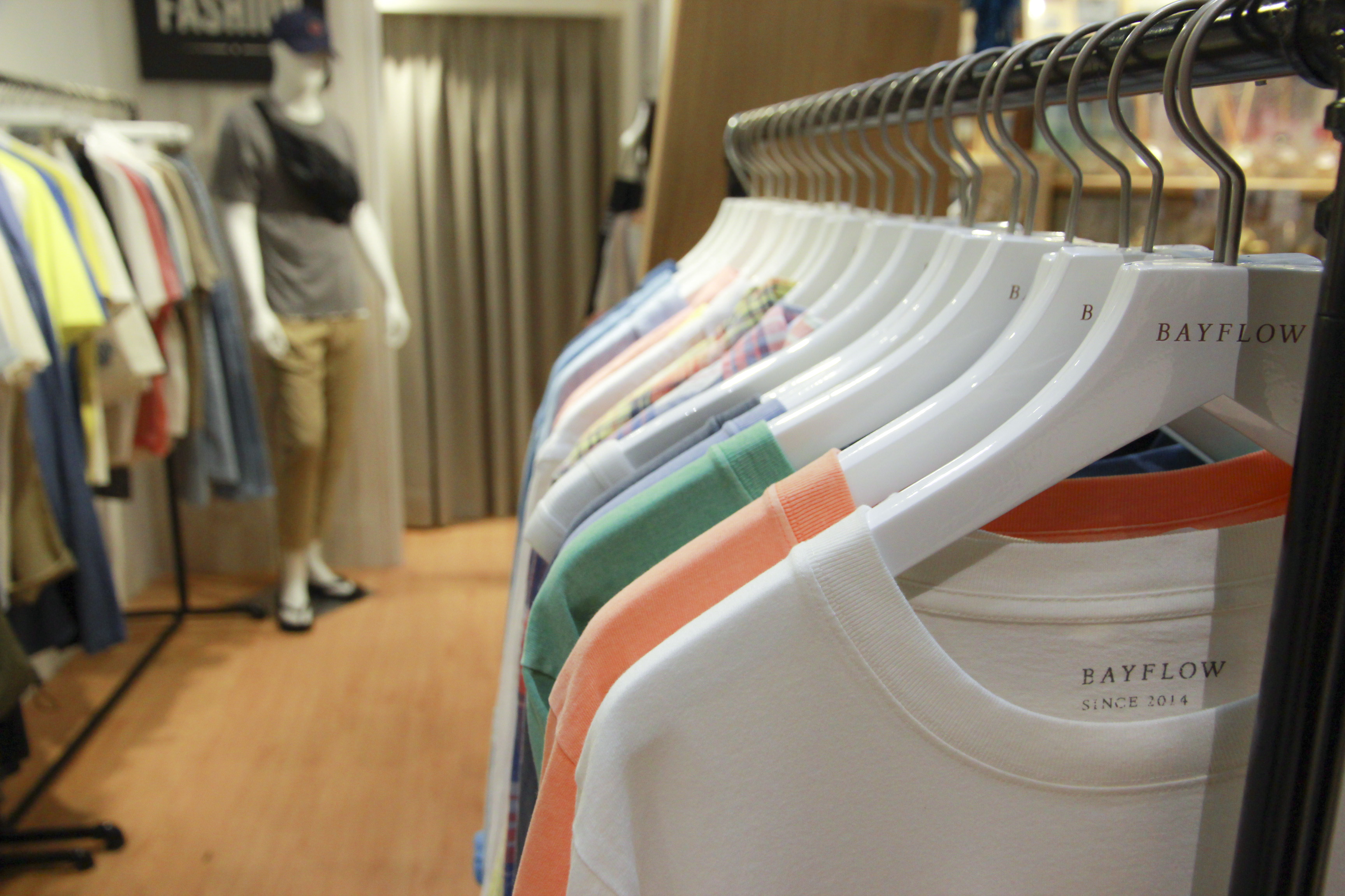 BAYFLOW 的服飾系列主要分為「休閒度假」及「都會感時尚」兩種風格,而材質皆選用棉質以呈現出 BAYFLOW 想表達的清爽舒適特色。同時,也推出多款百搭耐穿的丹寧服裝,欲提供給輕熟齡世代所追求的高品質休閒單品。