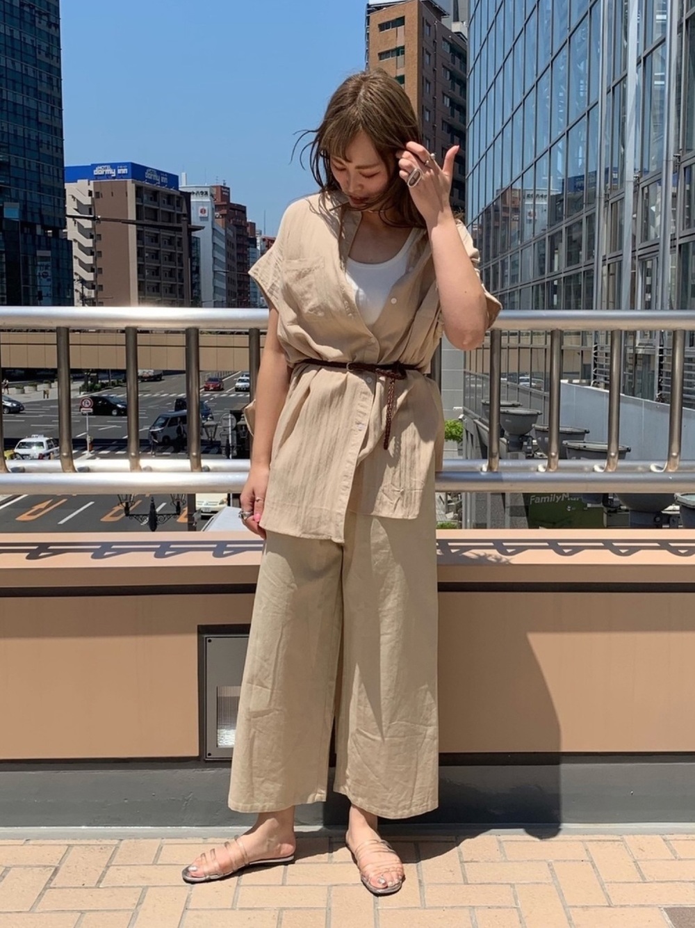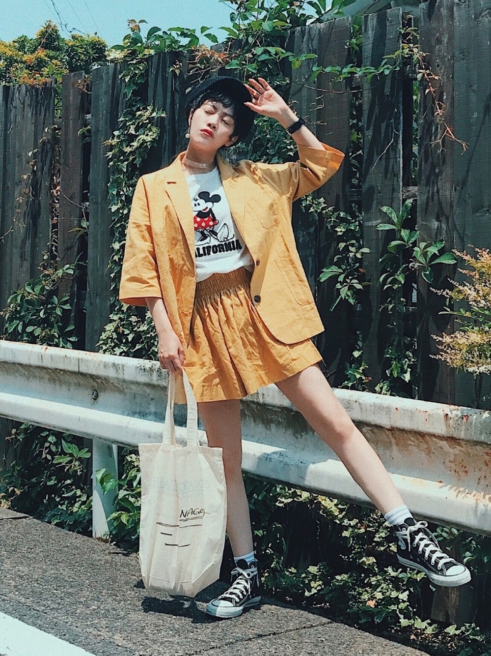 上下身可分開,但一起著用時有著類似連身褲造型的套裝也受到眾多日本女生喜愛。連身褲最大的缺點就是不易穿脫,可分開的套裝款式解決了這個問題,但卻在視覺上達到相同的效果,縱長線條還能在視覺上拉長身高,具有休閒感的氛圍讓造型的好感度也大大提升。