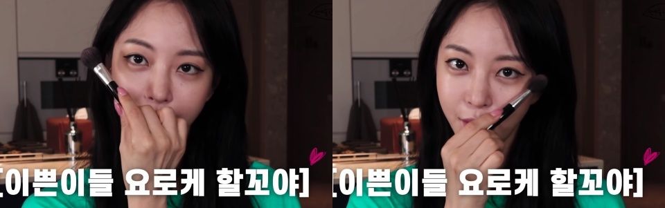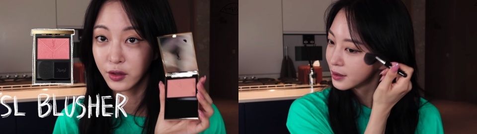 腮紅刷法,韓藝瑟分享自己喜歡「斜刷」在顴骨附近,這樣能有自然瘦臉的效果,刷完秒變瓜子臉!