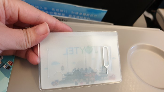 特寫一張,卡針在卡套裡。這卡套太有誠意了,材質很厚,感覺也可以拿來放自己的信用卡或悠遊卡。之前我買其他家的Sim卡給的是夾鏈袋而已。