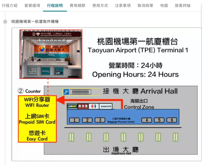 kkday配合的櫃檯是24小時,搭紅眼班機也不怕無法領取Sim卡。