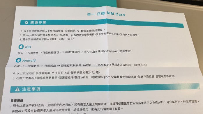使用說明,設定真的非常簡單喔,把這張Sim卡放進手機,按照指示即可使用。
