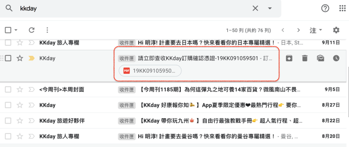 訂購完成後,E-mail會收到一張憑證,裡面會有一個PDF檔案,上面有QR Code。