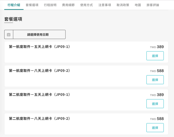 往下滑可以選擇五天或是八天,記得日期跟航廈要選對喔。