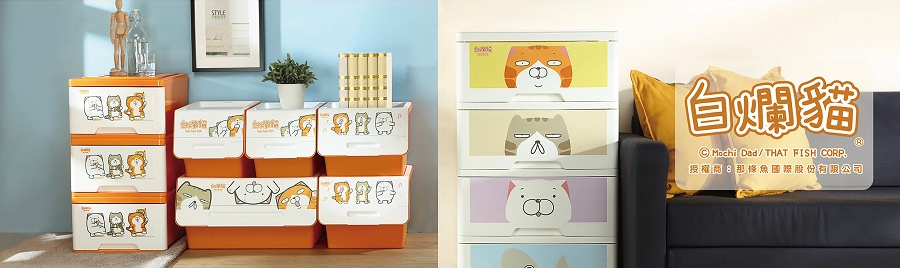 這款真的是白爛貓粉必買!白爛貓獨家授權給知名整理箱品牌 Keyway,推出了抽屜整理箱、直取式收納箱和四層抽屜櫃等收納單品,只能說每一款都超級白爛又可愛的啦~這系列收納箱是限量發行,要搶要快啊~