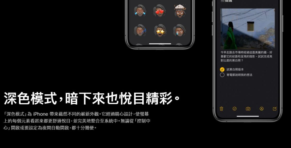 - 系統整合 – 「深色模式」全面精彩整合於 iOS 之中,無論從各種內建 app 與設定,至系統層級的檢視介面皆完美呈現。