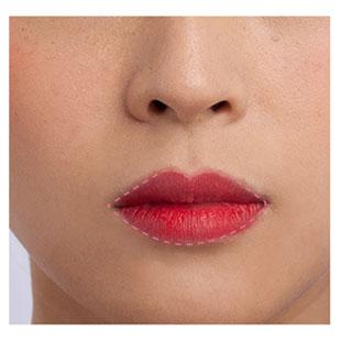 紅脣可以先將雙唇閉起,在雙唇上畫愛心,不用全部塗滿,建議選霧面且顏色飽和的紅色唇膏,若手邊只有水潤光澤的唇膏,可以利用衛生紙先將雙唇抿一下,去掉多餘油光即可。