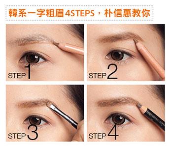 STEP4 以深黑或深灰眉筆再輕畫過一次,顏色會更飽和,塑造粗眉的俐落感。
