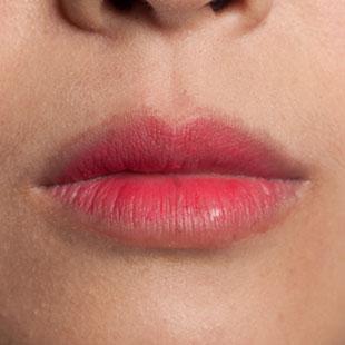 STEP2 上下唇均勻「抿」一下衛生紙,去掉唇膏的油脂與光澤,打造霧面唇感。